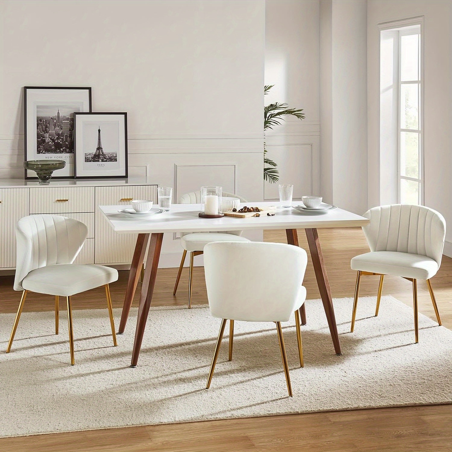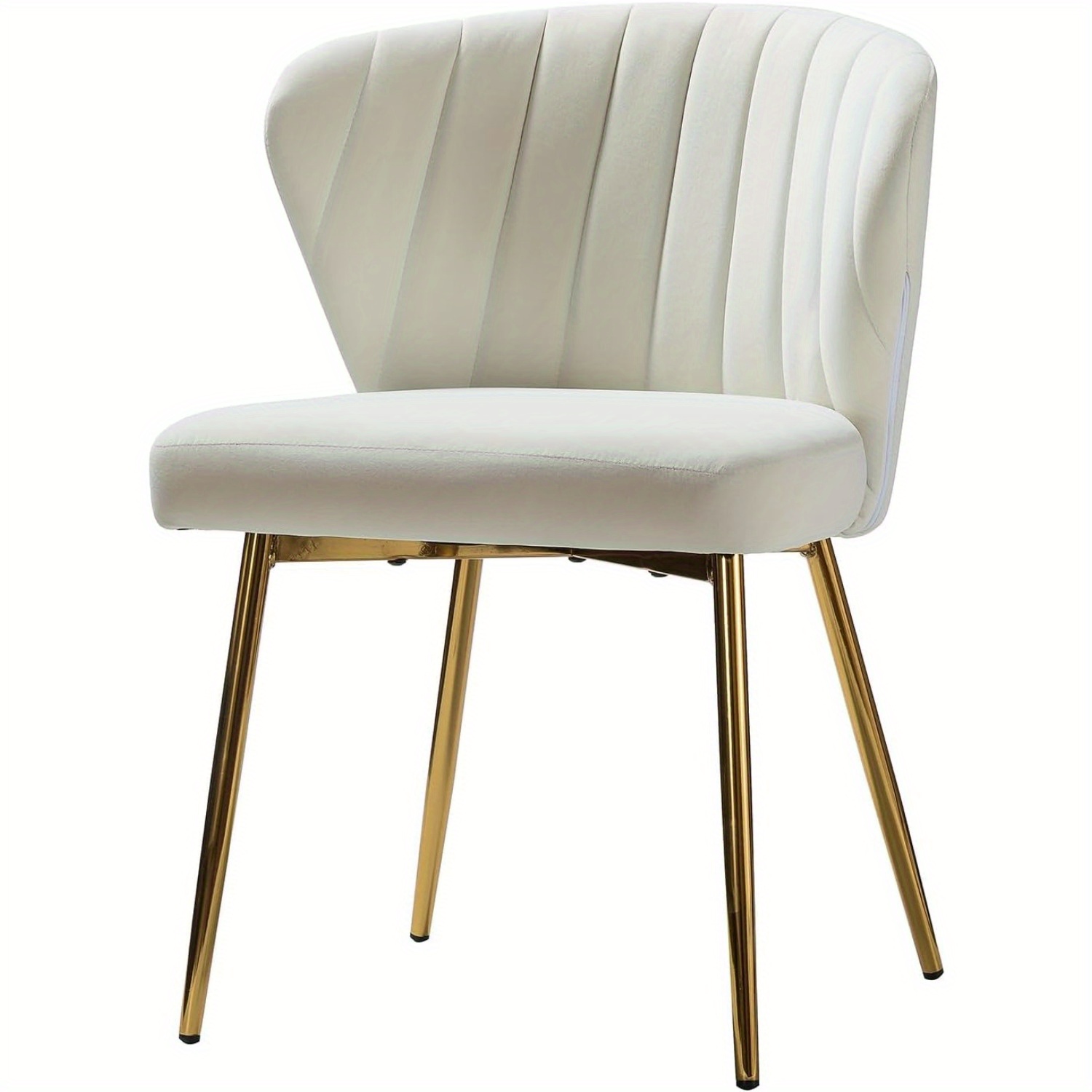 Contemporary Velvet Dining Chair, Compact Vanity Chair with Backrest, Stylish Metal Legs, Chic Tufted Armless Accent Chair for Living Room, Upholstered Adorable Side Chair for Bedroom And Beauty Room - Ivory
