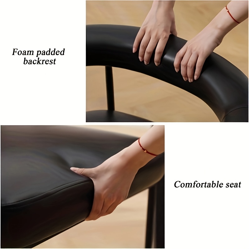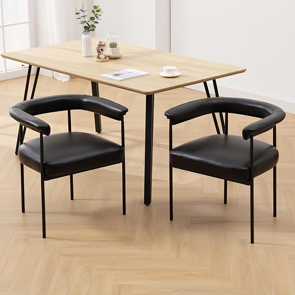 Set of 2 Modern Barrel Dining Chairs Faux Leather Upholstered Accent Side Chairs Vanity Chairs with Metal Finish for Kitchen Dining Room Living Room